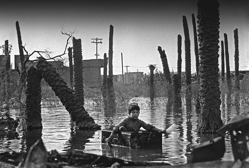 War, even after years, is omnipresent. Several generations bear the wounds which start to bleed whenever war is threatened. Paranoia sets in and theories sprout up like weeds. Remnants of the Iran-Iraq war still cause casualties among civilians whether from landmines or leftover poisons. Oil industry worker’s hard labor only brings them the dark side of black gold. Photographs speak to this.